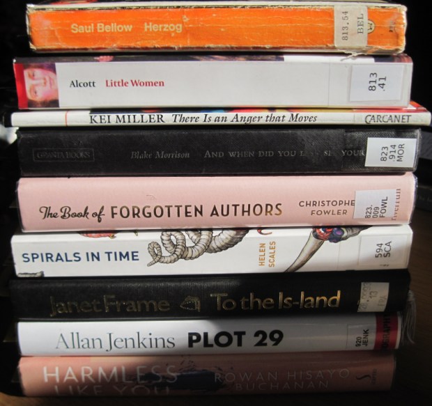 A lot of the university library books have been hanging around since the autumn — they can be renewed pretty much indefinitely, so I keep putting them off. This blog feature is a handy way of reminding myself what’s still around and then forcing myself to read at least a few each month so the next month’s lineup looks a little different!