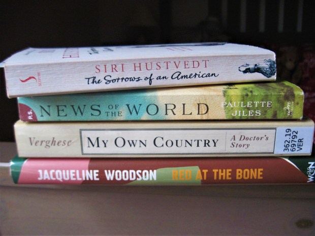 I’m continuing to read and write to the blog plan I had set up for March into April. What else is there to do? In the meantime, I assembled some titles, mostly from books on my bedside table, into a few impromptu poems. Remember what fun book spine poetry was back in 2016? (My efforts from that short-lived craze are here and here.)
