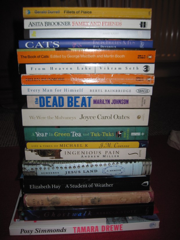 The six purchases still to read are two cat-themed anthologies for reading piecemeal, plus these four – two fiction and two non-: