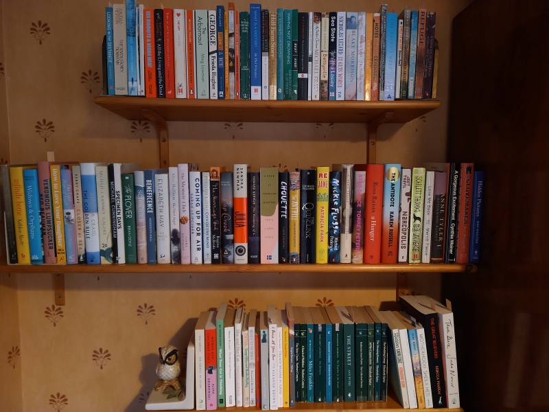 And as I’ve mentioned to some of you, I’ve been disappointed that attempts to highlight segments of my collection – e.g. shelves devoted to BIPOC authors and Women’s Prize nominees – failed: these books seemed more likely to sit unread for years. It must be something to do with creating a feeling of obligation. Even my piles of foodie reads and medical memoirs, two of my favourite subgenres, have gotten ignored.