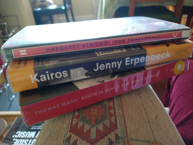 I’ve been borrowing some Booker and Wainwright Prize list reads, as well as looking ahead to our mid-September trip to Berlin and Novellas in November.