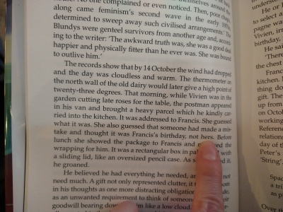 I call it “Book Serendipity” when two or more books that I read at the same time or in quick succession have something in common – the more bizarre, the better. This is a regular feature of mine every couple of months. Because I usually have 20–30 books on the go at once, I suppose I’m more prone to such incidents. People frequently ask how I remember all of these coincidences. The answer is: I jot them down on scraps of paper or input them immediately into a file on my PC desktop; otherwise, they would flit away!