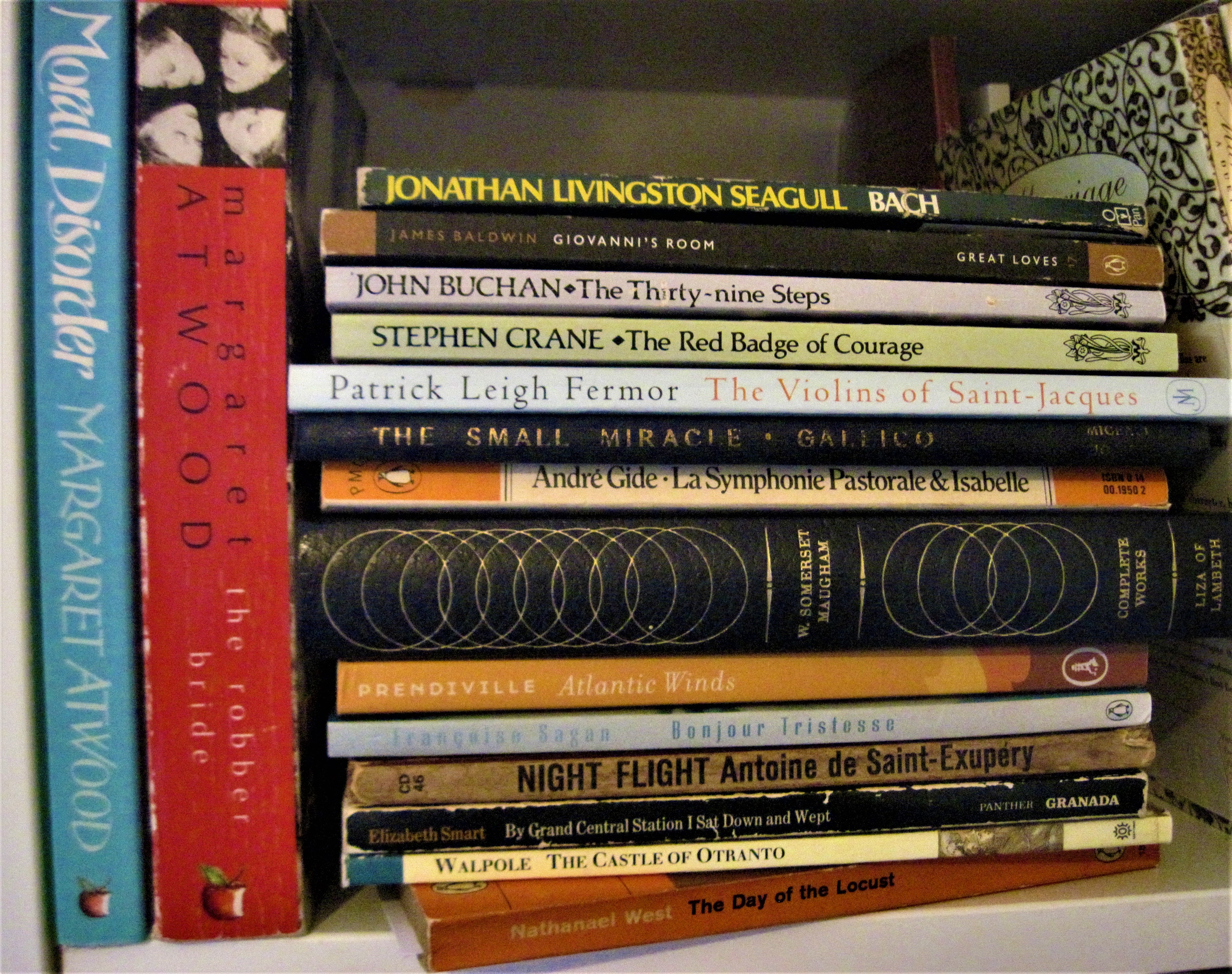 Atwoods and fiction stack.