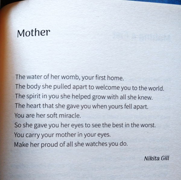 End rhymes, slant rhymes, and alliteration form part of the sonic palette. Through imagined conversations with the self and with others who have hurt the speaker or put them down, they wrestle with concepts of forgiveness and self-love. “Just a girl” chronicles instances of sexualized verbal and emotional abuse. The use of repeated words and phrases, with minor adaptations, along with the themes of trauma and recovery, reminded me of Rupi Kaur’s performance poetry-inspired style. “Monster” is more like a short story with its prose paragraphs and imagined dialogue. “How are you” is an erasure poem that crosses out all the possible genuine answers to that question in between, leaving only the socially acceptable “I’m fine thanks. … how are you?”
