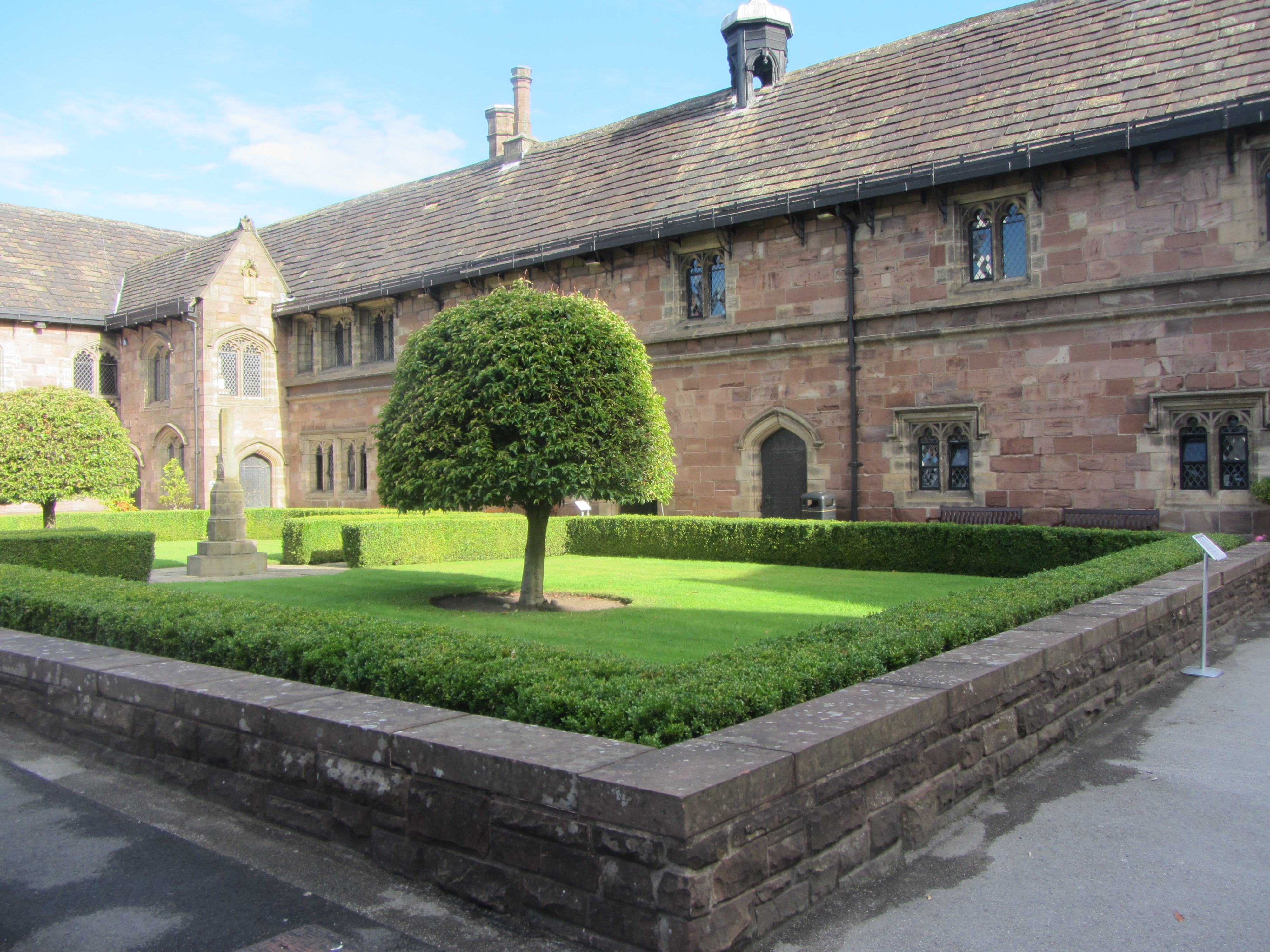 After leaving our bags at the hotel on Sunday afternoon, we wandered over to the Gaskell House. It’s only open a few days a week, so we were lucky to be around during its opening hours. All of the house’s contents were sold at auction early in the twentieth century, so none of the furnishings are original, but the current contents have been painstakingly chosen to suggest what the house would have looked like at the time Gaskell and her family – a Unitarian minister husband and their four daughters – lived there. I especially enjoyed seeing William’s study and hearing how Charlotte Brontë hid behind the curtains in the drawing room so she wouldn’t have to socialize with the Gaskells’ visitors. The staff are knowledgeable and unfussy; unlike in your average National Trust house, they let you sit on the furniture and touch the objects. The gardens are also beautifully landscaped.