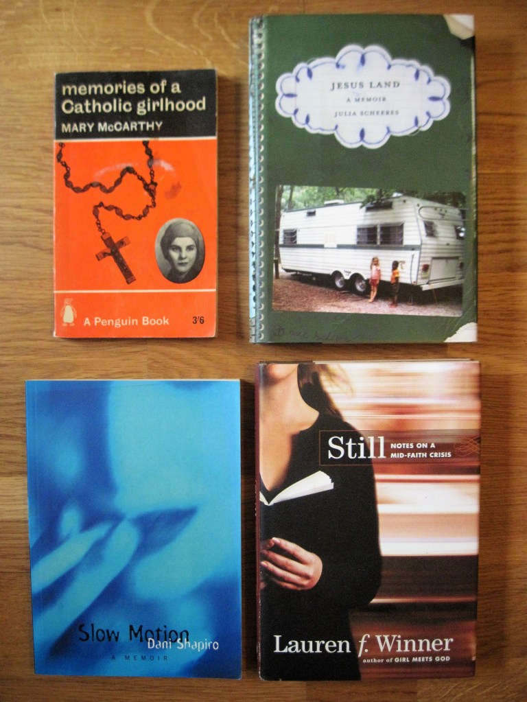 Not pictured: (on Nook) Girl at the End of the World by Elizabeth Esther; (on Kindle) Shunned by Linda A. Curtis and Cut Me Loose by Leah Vincent. Also, I got a copy of Priestdaddy by Patricia Lockwood for my birthday, but I’m not clear to what extent it’s actually about her religious experiences.