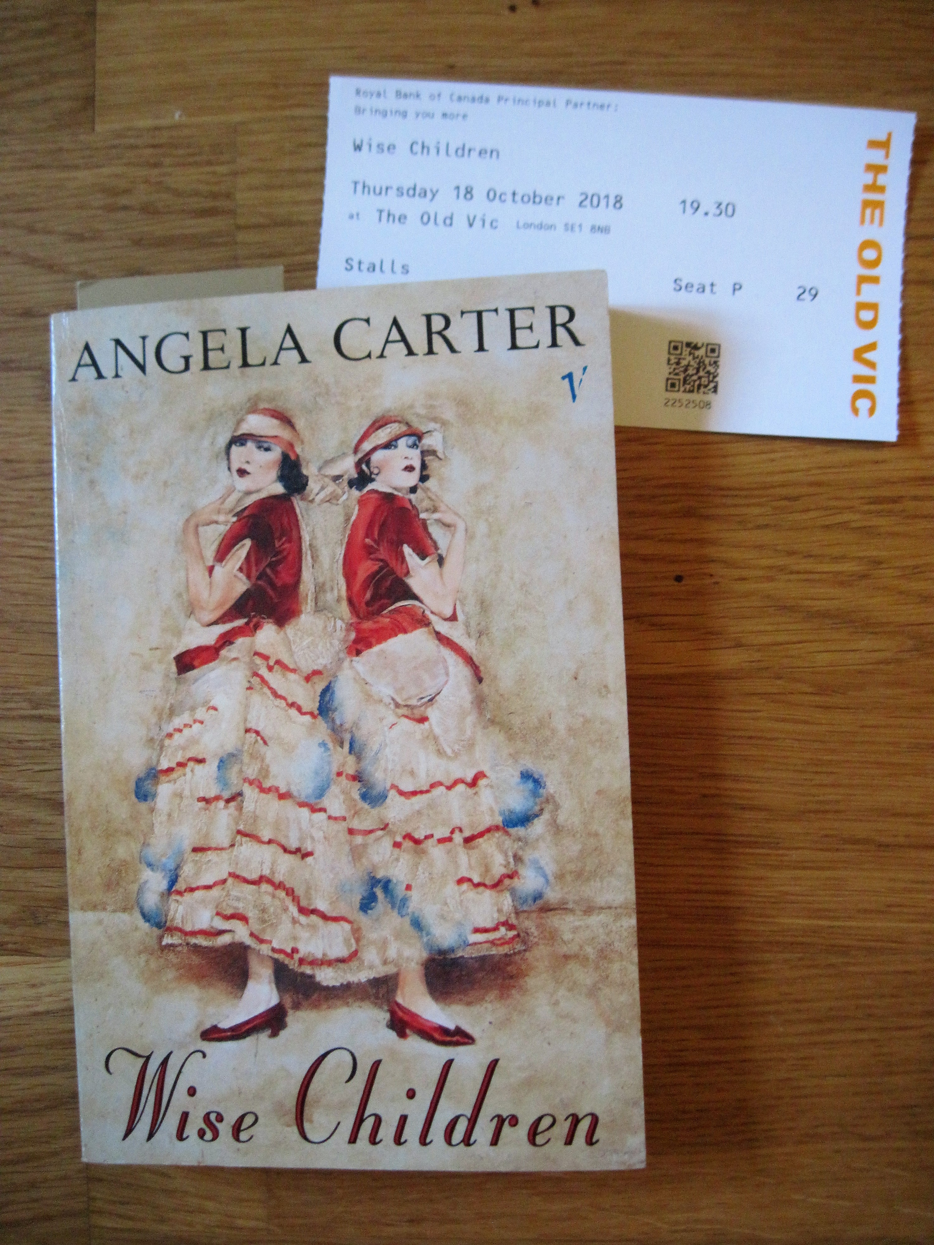 Through a Granta giveaway on Twitter I won two tickets to see Wise Children at London’s Old Vic theatre on October 18th. Clare of A Little Blog of Books joined me for an excellent evening at the theatre, and we both followed it up by reading the novel – Angela Carter’s final book, published in 1991. (Clare’s write-up of the book and play is here.) It has one of the best openers I’ve come across recently: