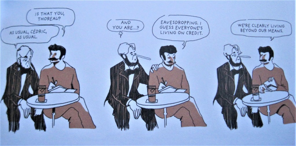 I can’t seem to get away from Henry David Thoreau in my recent reading. Last year I reviewed for the TLS two memoirs that consciously appropriated the 19th-century environmentalist’s philosophy and language; the other night I found mentions of Thoreau in a Wallace Stegner novel, a new nature book by Lucy Jones, and travel books by Nancy Campbell and Charlie English. So I knew I had to read this debut graphic novel (but is it a memoir or autofiction?) about a Paris painter who is plagued by eco-anxiety and plans to build his own off-grid home in the woods.
