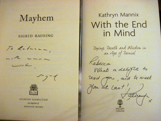 Afterwards we spoke to three of the shortlisted authors. Kathryn Mannix said she’d so enjoyed following our shadow panel reviews and that it was for the best that O’Connell won, as any other outcome might have spoiled the lovely girls’ club the others had going on during the weekend’s events. I got two signatures and we nabbed a quick photo with Lindsey Fitzharris. It was also great to meet Simon Savidge, the king of U.K. book blogging, and author and vlogger Jen Campbell. Other ‘celebrities’ spotted: Sarah Bakewell and Ben Goldacre.