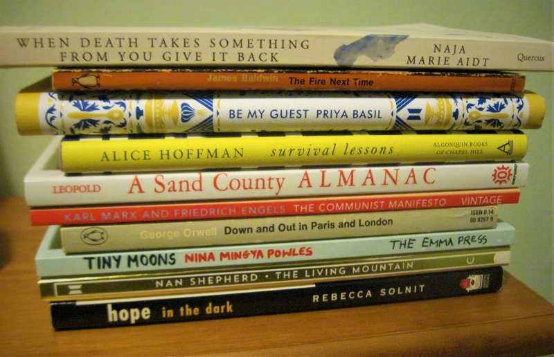 The Fire Next Time by James Baldwin [89 pages]: A hard-hitting book composed of two essays: “My Dungeon Shook,” is a letter addressed to his nephew and namesake on the 100th anniversary of emancipation; and “Down at the Cross: Letter from a Region in My Mind,” which first appeared in the New Yorker and tells of a crisis of faith that hit Baldwin when he was a teenager and started to question to what extent Christianity of all stripes was upholding white privilege. This feels completely relevant, and eminently quotable, nearly 60 years later.