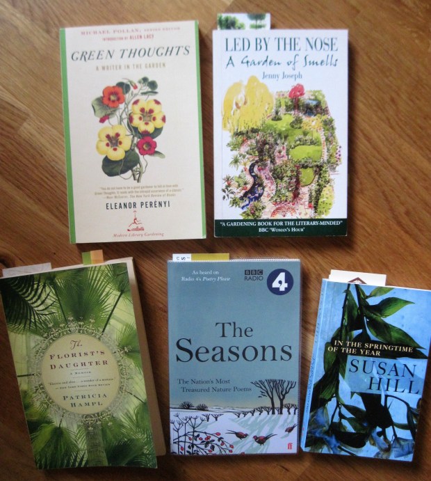 In March through May I often try to read a few gardening-themed books and/or ones with “spring” in the title. Here are some of the ones that I have on the go as occasional reading: