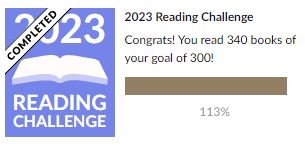 In 2022 my reading total dipped to 300, whereas in 2023 I was back up to what seems to be my natural limit of 340 books (as 2019–21 also proved).