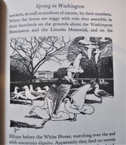 For Halle, who worked in the State Department, nature was an antidote to hours spent shuffling papers behind a desk. In this spring of 1945, there was plenty of wildfowl to see in central D.C. itself, but he also took long early morning bike rides along the Potomac or the C&O Canal, or in Rock Creek Park. From first migrant in February to last in June, he traces the spring mostly through the birds that he sees. More so than the specific observations of familiar places, though, I valued the philosophical outlook that makes Halle a forerunner of writers like Barry Lopez and Peter Matthiessen. He notes that those caught up in the rat race adapt the world to their comfort and convenience, prizing technology and manmade tidiness over natural wonders. By contrast, he feels he sees more clearly – literally as well as metaphorically – when he takes the long view of a landscape.