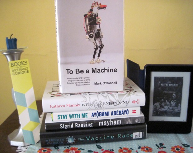 Addiction, death, infertility, surgery, transhumanism and vaccines: It’s been quite the varied reading list for the five of us this spring! Lots of science, lots of medicine, but also a lot of stories and imagination.